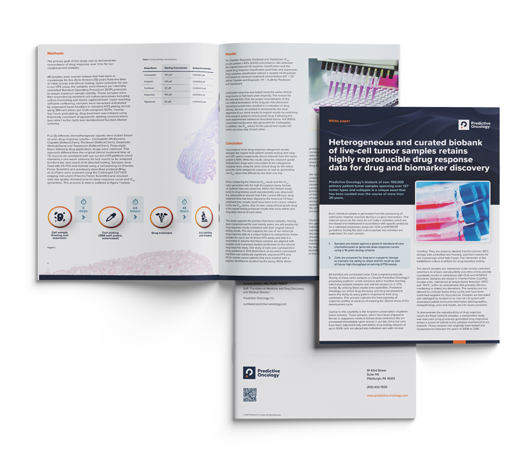 company’s live-cell biobank continue to produce accurate drug response data that is consistent