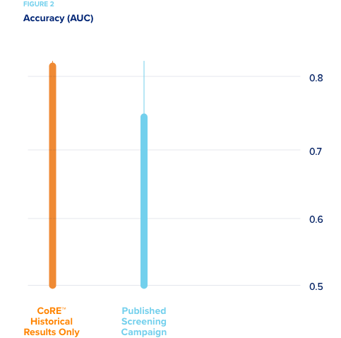 accurate predictive model. - By comparison, it took only 30% of the experimental space for CORE to reach this same level of accuracy predicting hepatotoxicity.